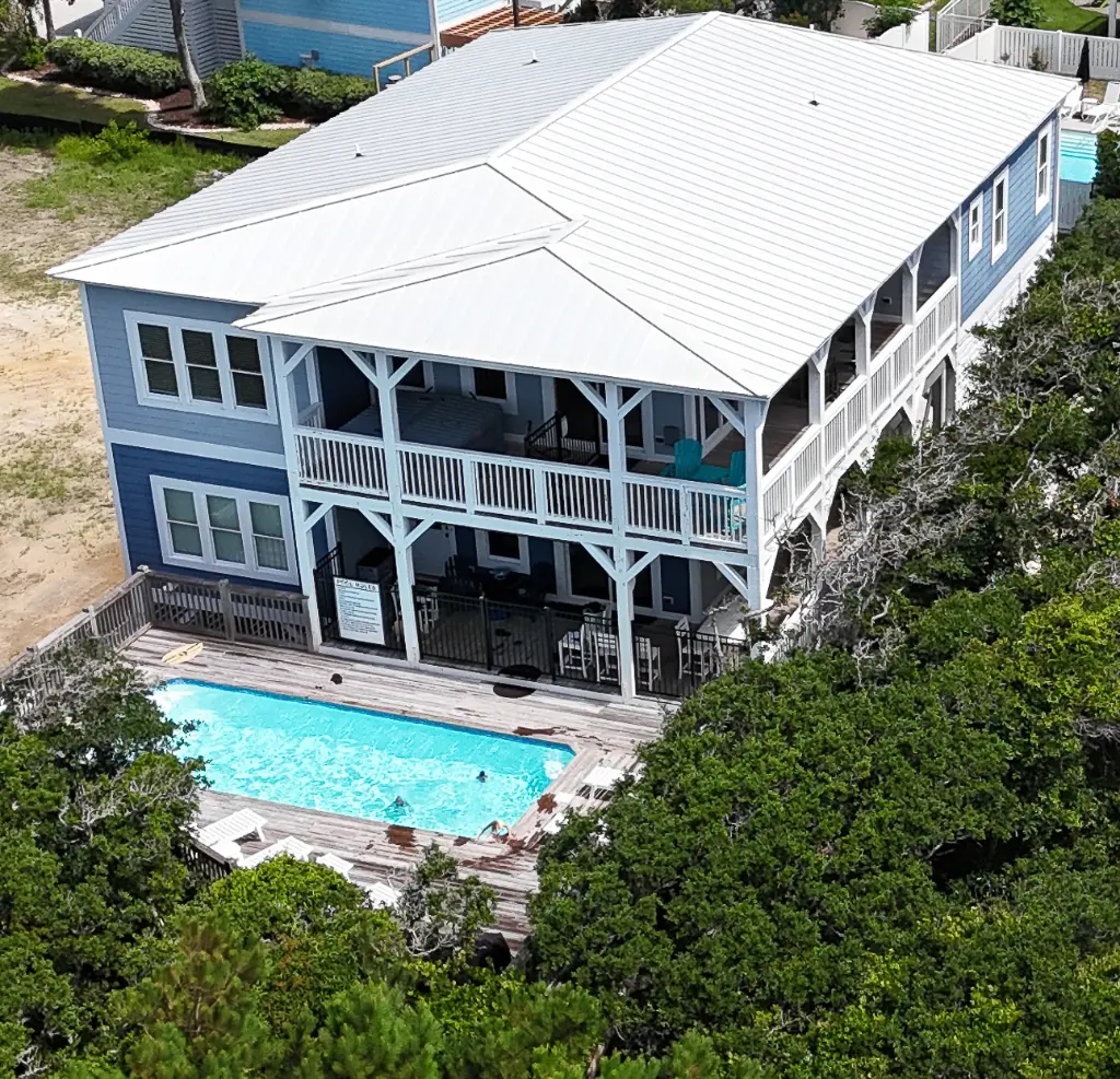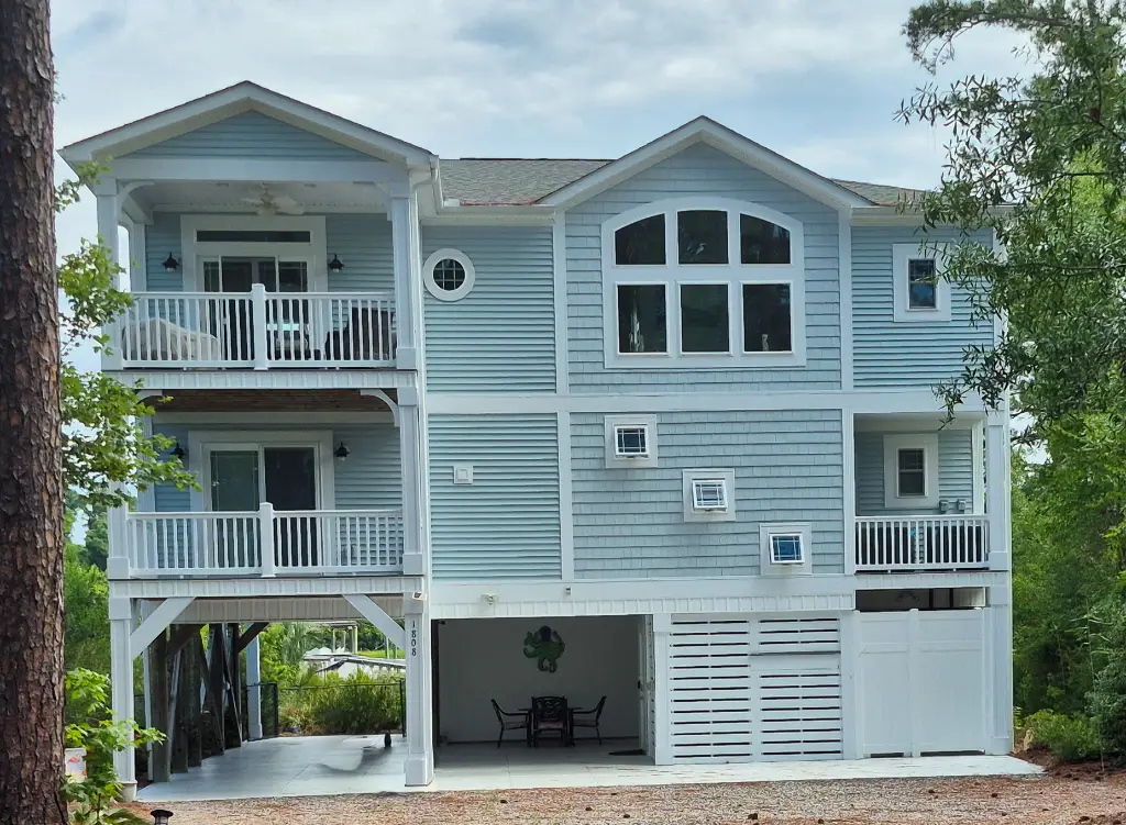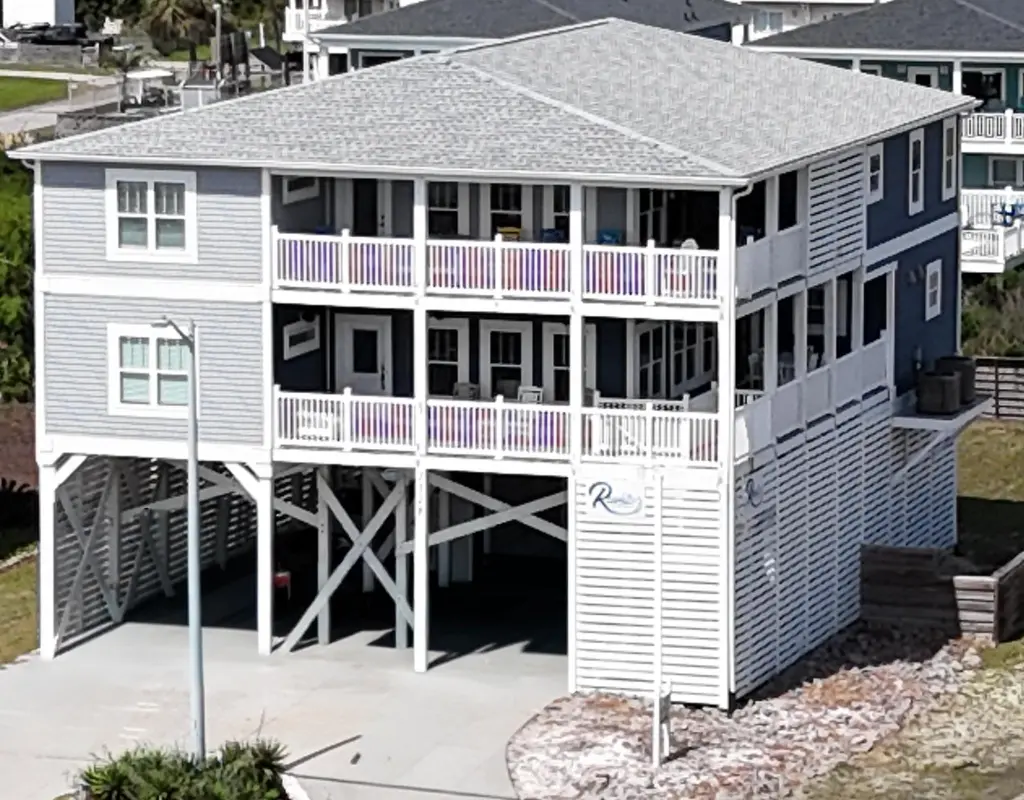 Spacious 5-bedroom coastal piling home with inverted plan, porches, pool, and elevator.