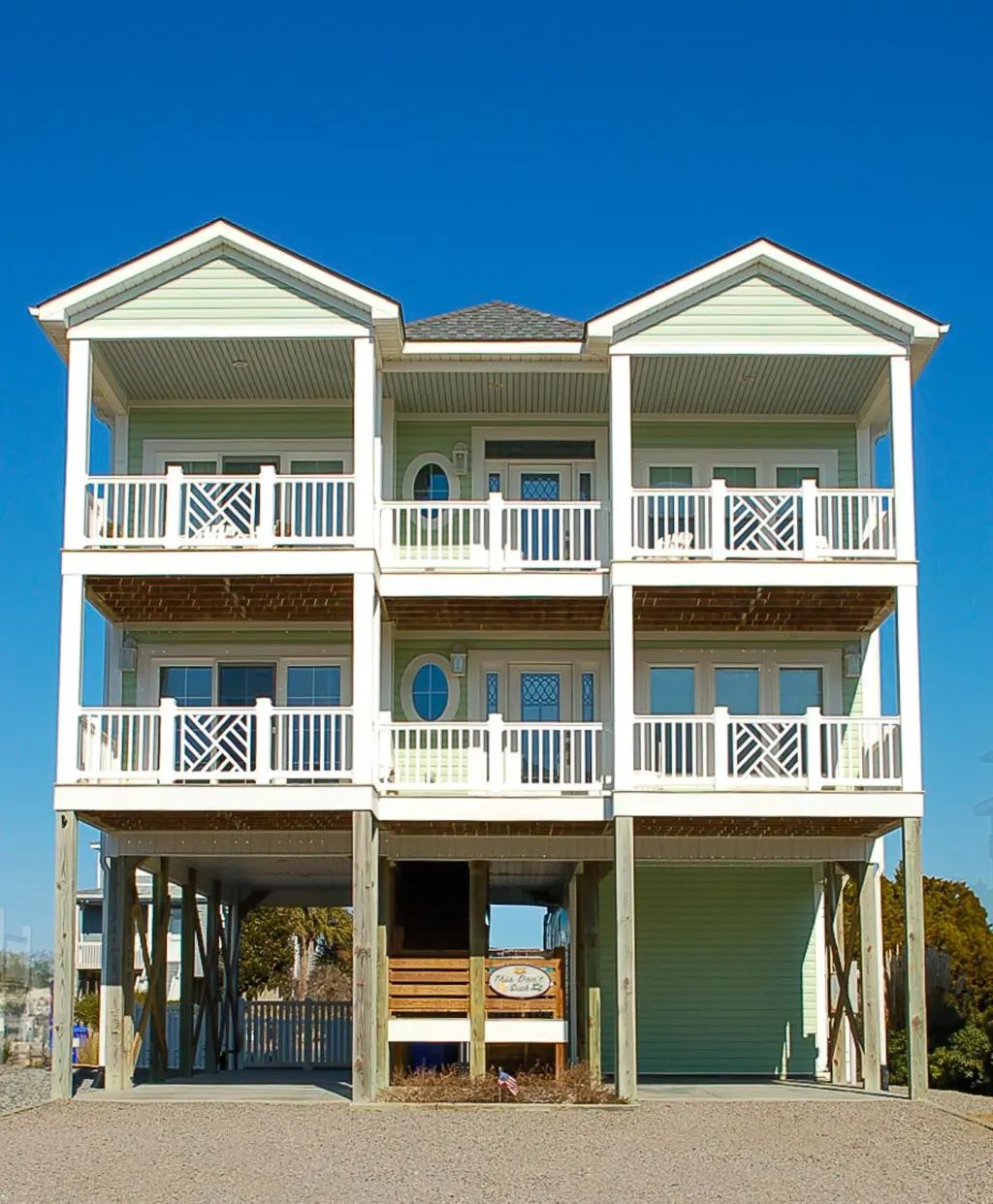 Elegant 4-bedroom piling home with inverted layout, spacious porches, elevator, and open living areas.