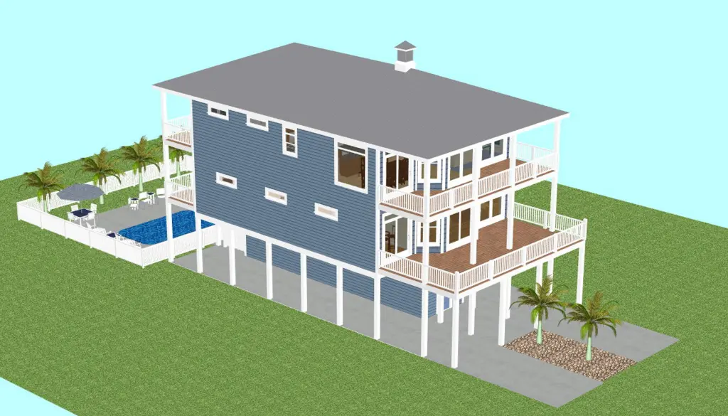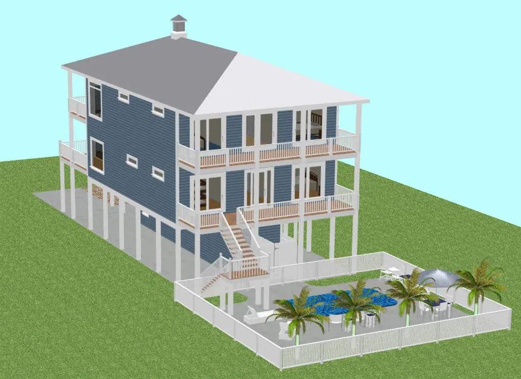 This home had been previously constructed with engineering approval. The package includes all plans and details necessary for construction. This includes all elevations, floor plans, floor framing plans, piling plan, girder plan and roof framing plan with associated details. Dimensions are accurate and intended to support final review and seal by a licensed local engineer. Final engineering approval may be required to ensure compliance with all local, state, and FEMA regulations. Flood-zone properties may have limits on ground-floor living space. Owners should confirm local requirements with surveyors and building officials to ensure compliance.