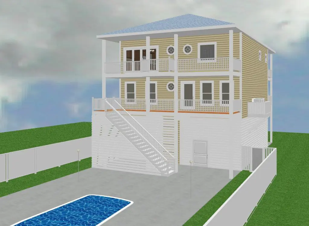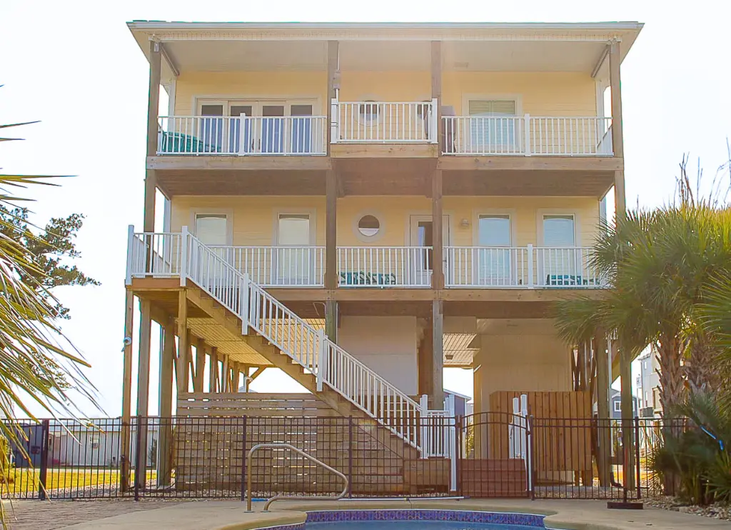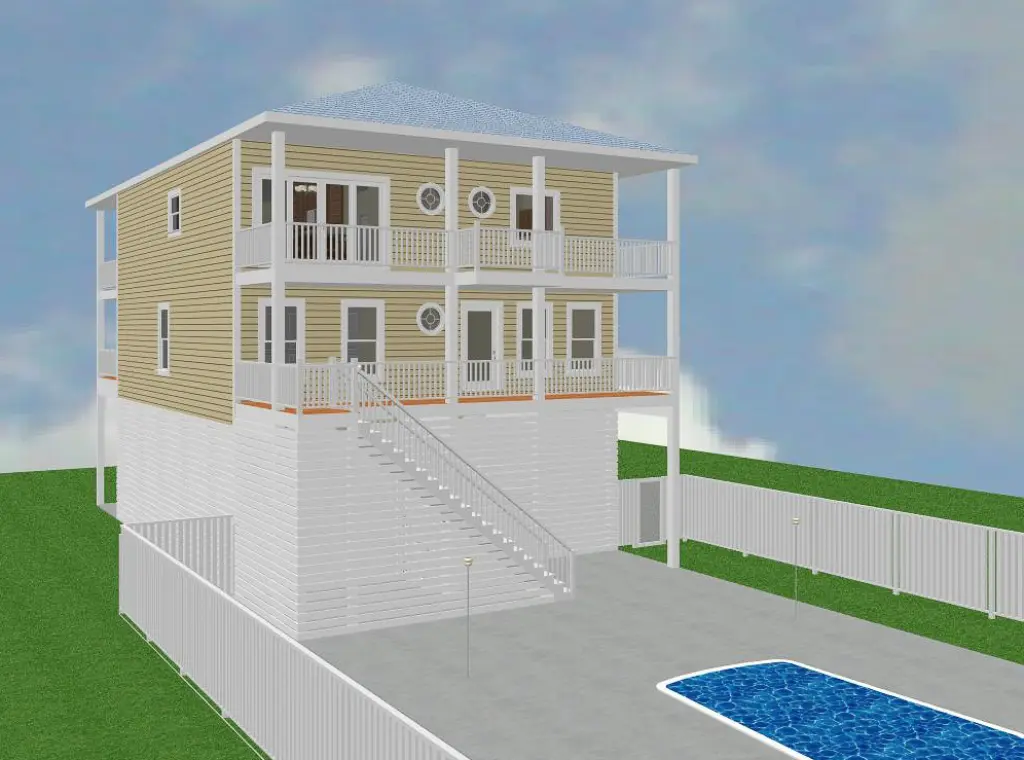 This beautifully designed 4-bedroom piling home blends timeless charm with modern comfort, featuring an inverted floor plan and bi-level front porches that highlight natural light, breezes, and surrounding views. The layout is crafted for ease, enjoyment, and flexibility—whether used as a full-time residence, vacation home, or high-end rental property. A passenger elevator and rear stairwell ensure effortless access to every level, including the pool-ready ground-floor patio.